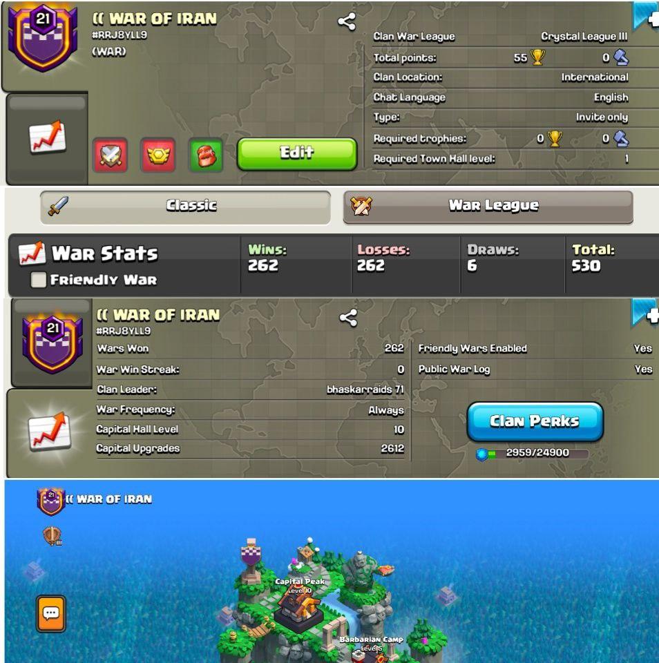 CAPITAL HALL 10 | Clan Level 17 | Name: anime lover's | Awesome Name | Wins 125 Losses 106 | Gold 1