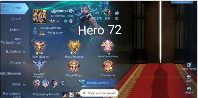 ML430 // Hero 72 | Skin 103 | 1 Collector | 1 Limited | 18 Epic Skins | Mythic Rank