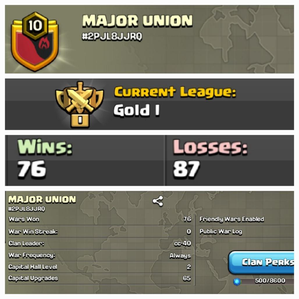 NAME- MAJOR UNION || GOLD 1|| CC-2 ||WAR LOG 76-87
