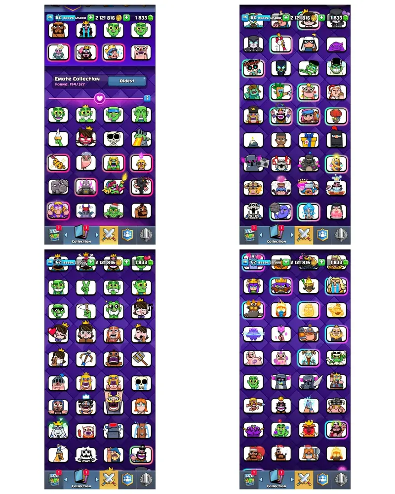 Peru Local | Level 62 | 119 Maxed Cards | 35 Elite Cards | 26 Evolution Cards | 194 Emotes | 90,000 Trophies | 35 Tower Skins | Free Name Change