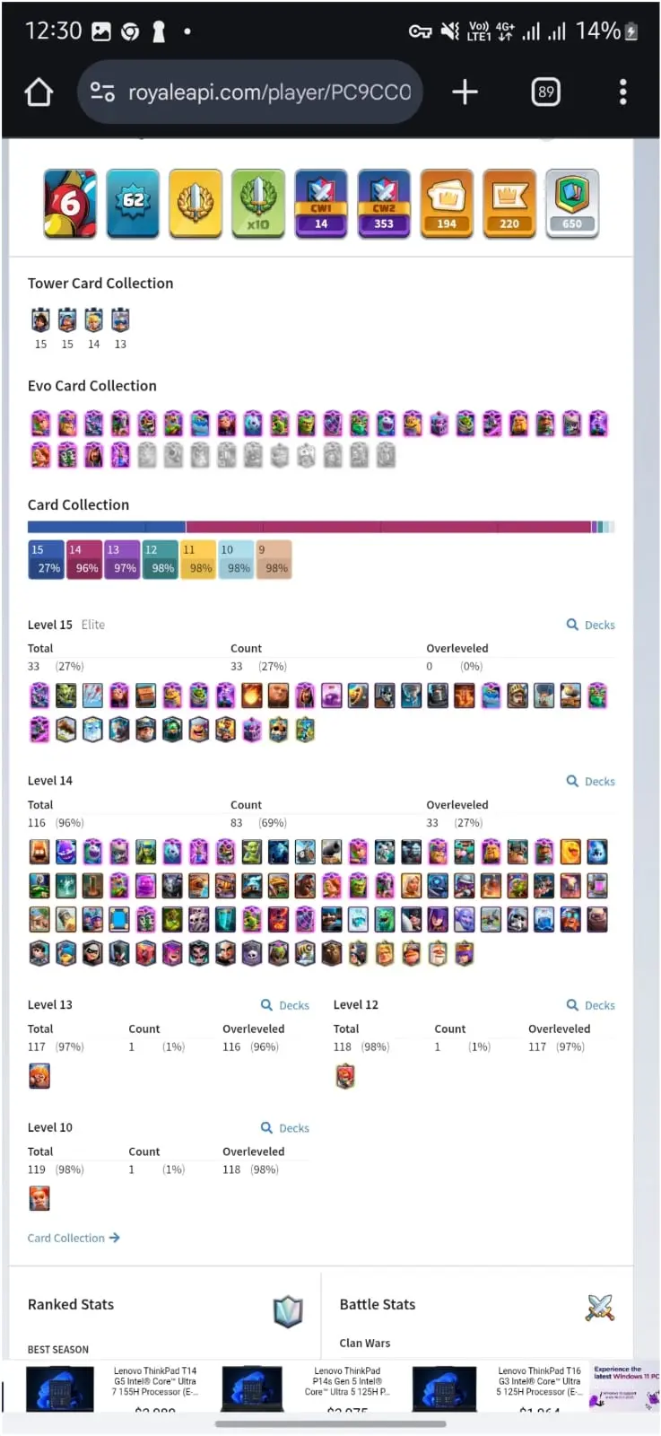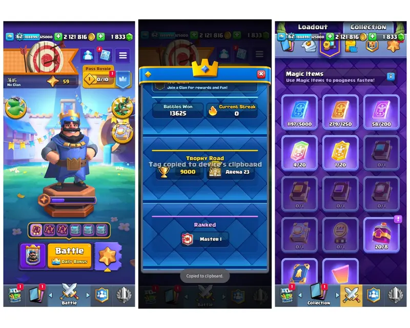 Peru Local | Lvl-62 | 119-Card Max | 35-Elite | 26-Evo | [194-Emote] | 90000 Trophy | 35-Tower Skin | Name Chang Free