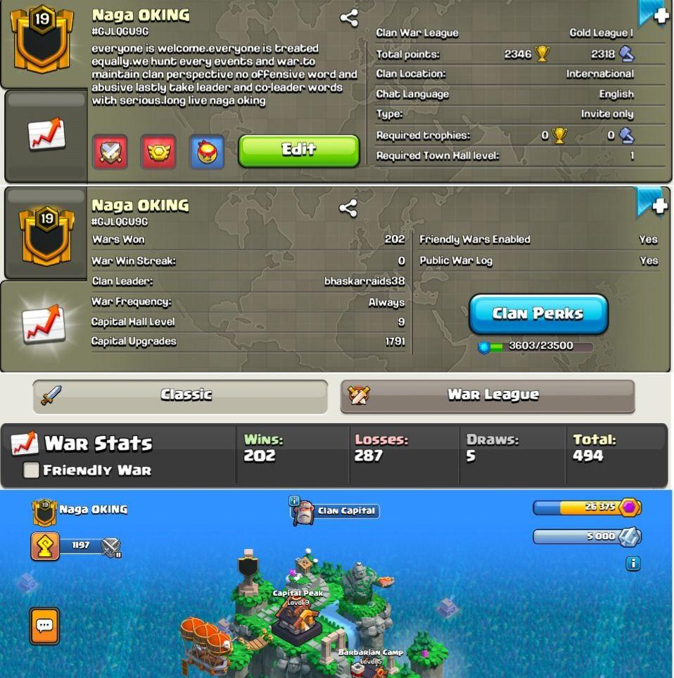 CAPITAL HALL 10 | Clan Level 17 | Name: anime lover's | Awesome Name | Wins 125 Losses 106 | Gold 1