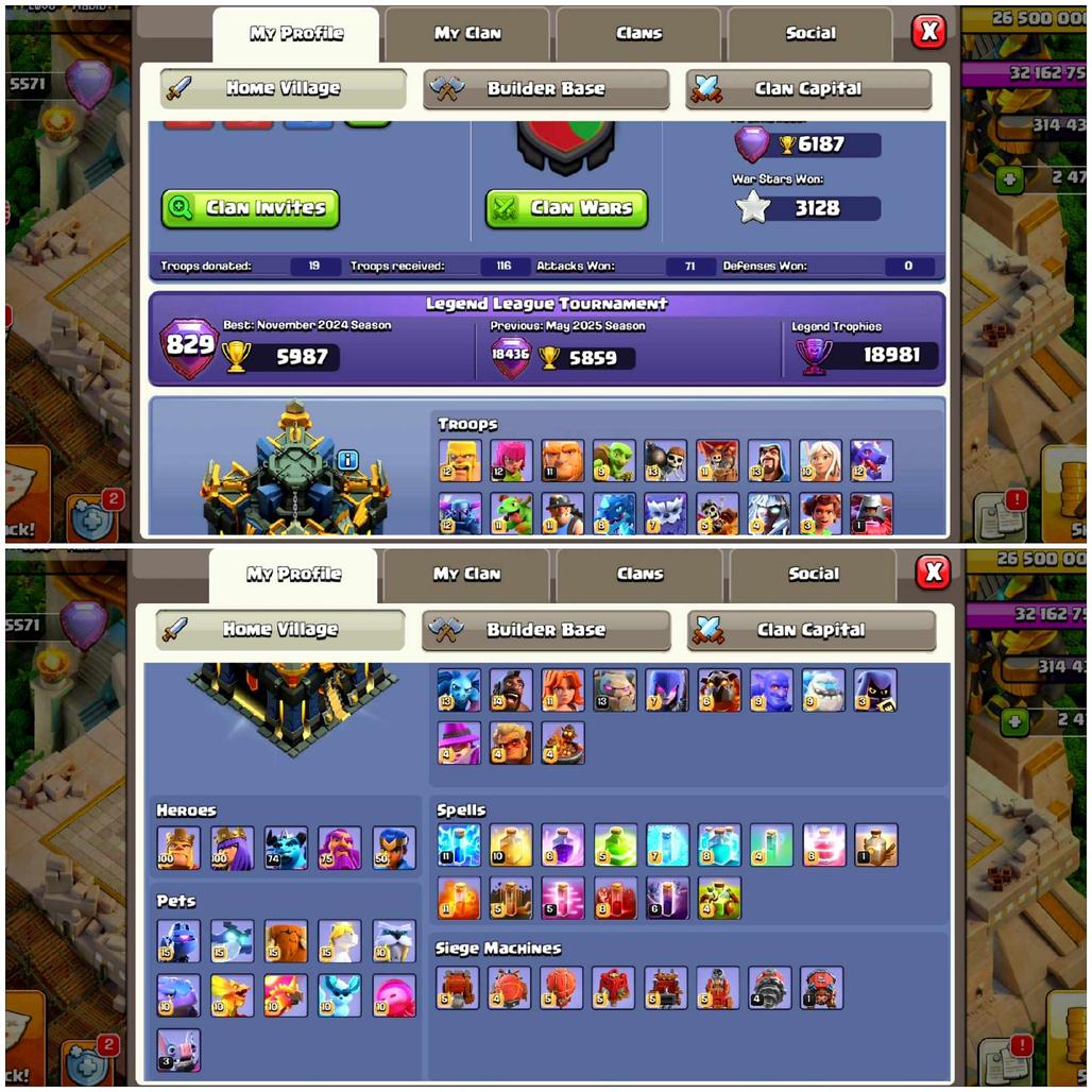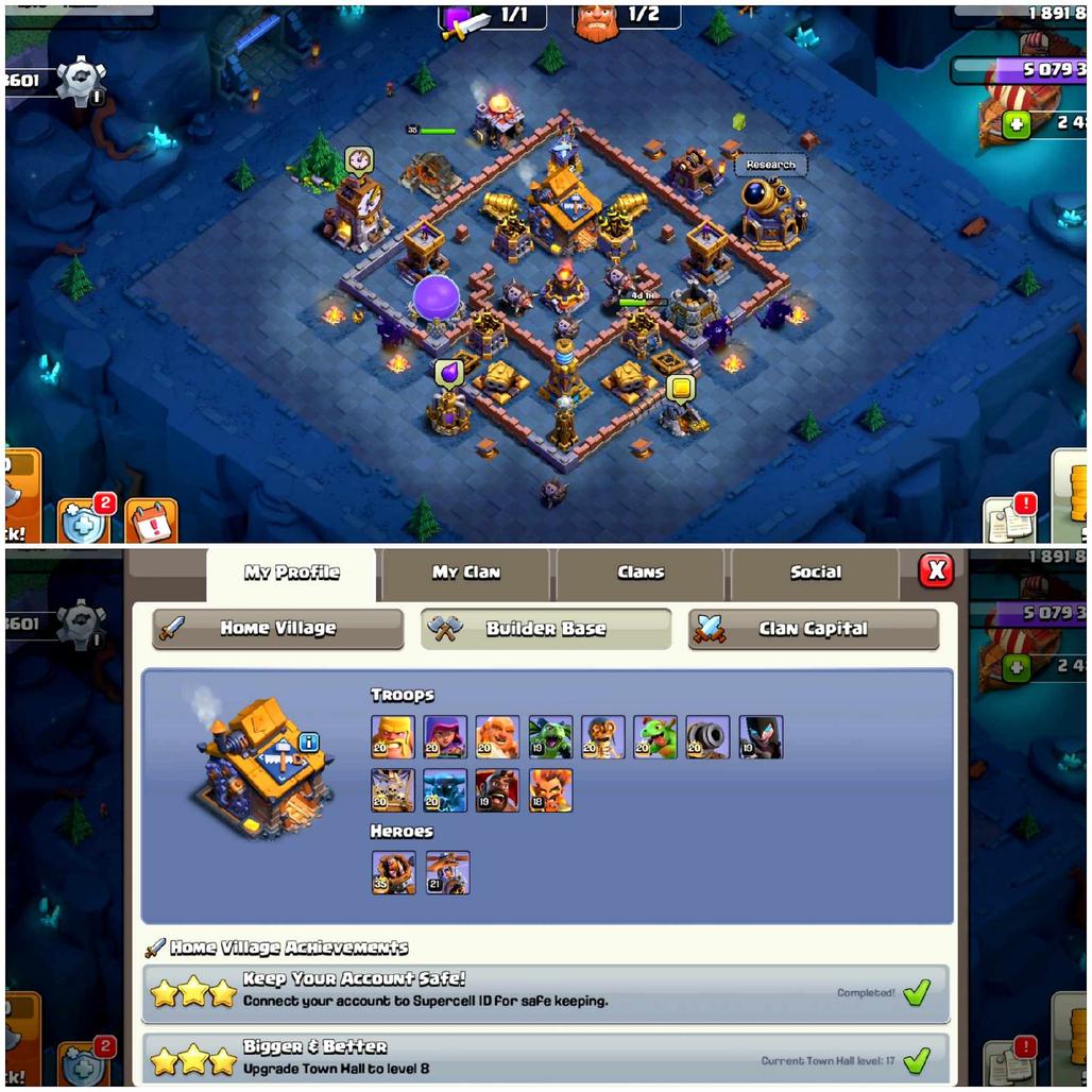 💢Everything is clearly shown in screenshots Heroes,Troops,Base,Seige Mashines,Gems,Builder Base.