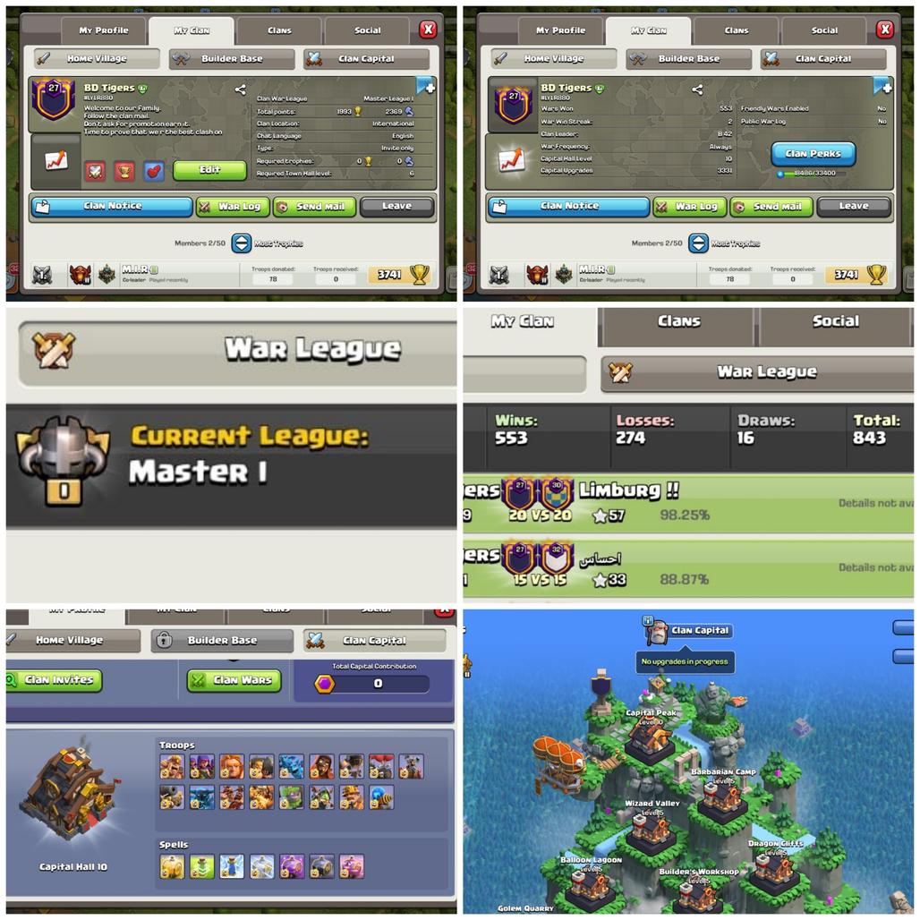 RARECU3331 TROOPS MAX LEVEL 27 CLAN CAPITAL10 FULL MAX NAME BD TigersMASTER 1 WIN 553 LOSS 274