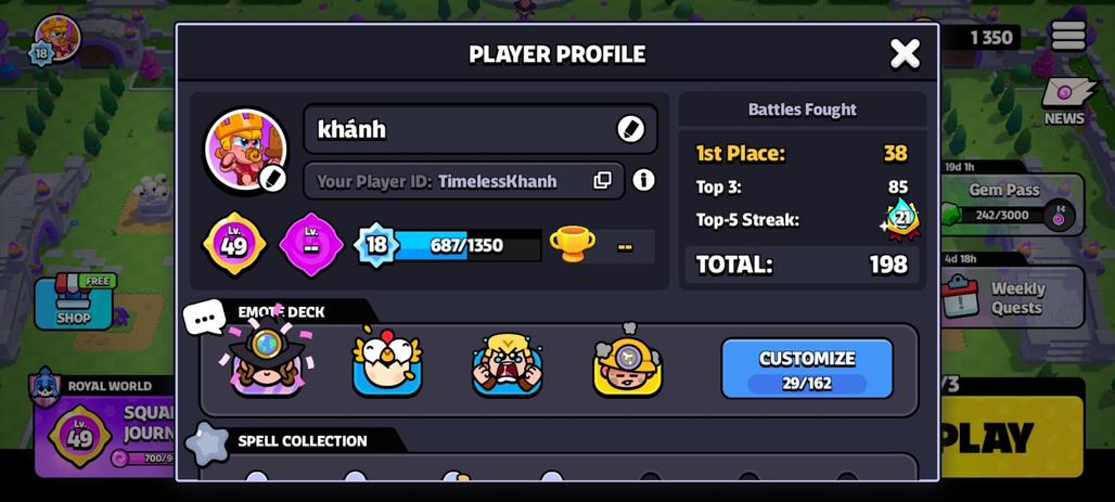 SQUAD BUSTERS -BEAUTIFUL VIP ACCOUNT |18 LVL | 49 LVL SQUAD JOURNEY | 18 SQUAD | 2 SQUAD 3 STARS .29 EMOJI |
