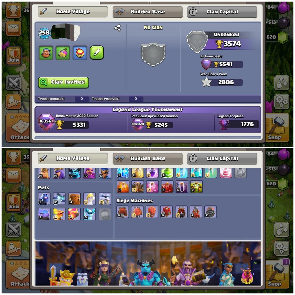 (SUPER) [] Th17 Account [] Hero's (95-95-70-70-43) [] Strong Defence for Farming [] Rare and Max Abilities []
