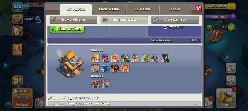 This account offers a robust setup with near-maximum defenses and powerful troops, ensuring you're ready for high-level clan wars and events. Enjoy seamless progression and strategic advantages right from the start.