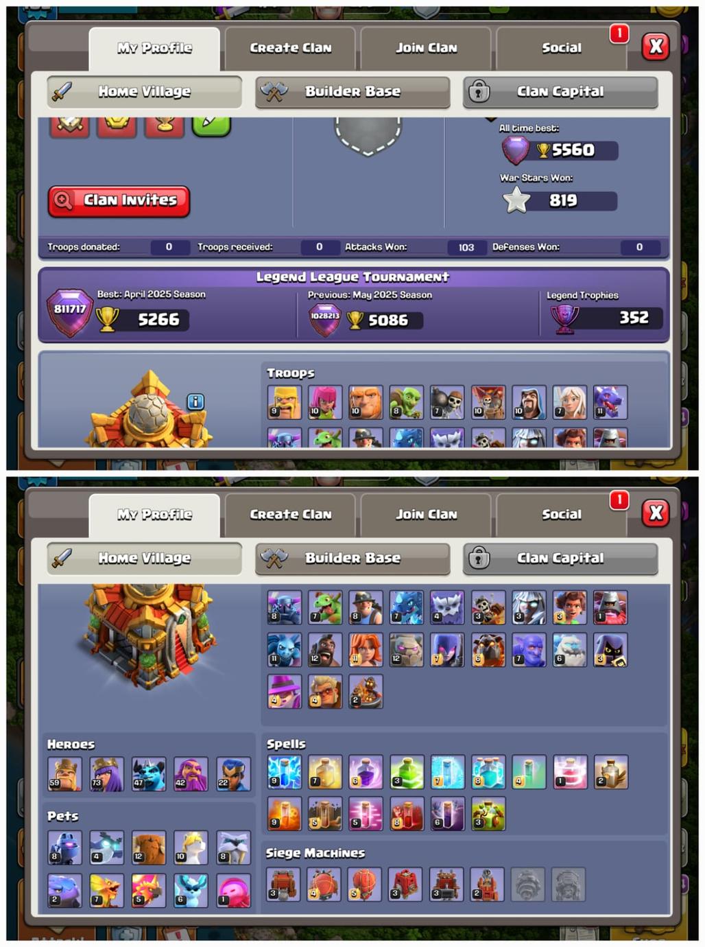 Best Deal in World--Th17 Wall Full Max--7X Epics--Xp201--Hero 55-74-56-60-35--6 Builder--Magic Items Full-Nc 1000--Many