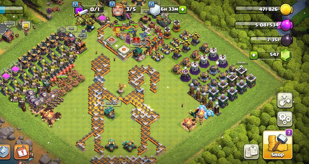 Rare account Giant gauntlet available -208 xp-17 best donation -75-80-50-51-30 heroes-all defence troops near maxed-chea
