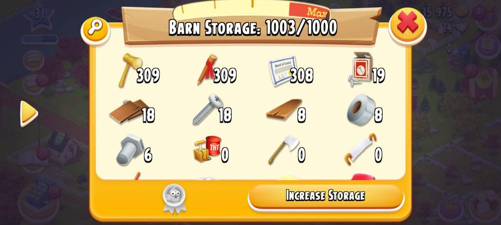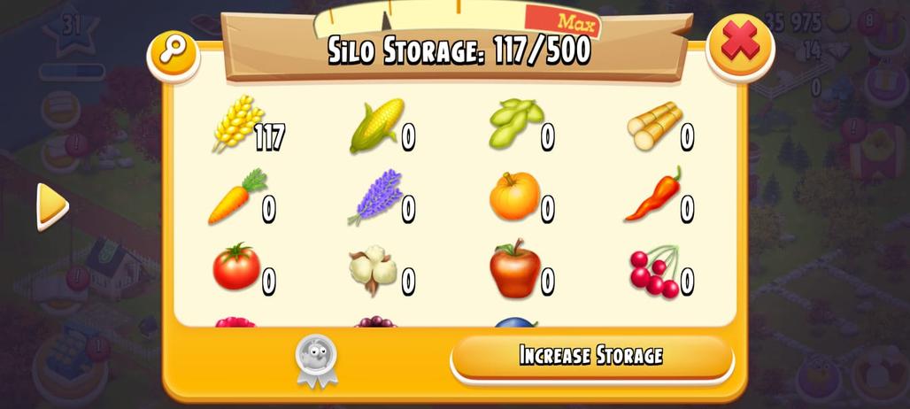 LEVEL 30 / 1000 Barn Storage / Fully Filled With Tools / Main Land Open / 500 Silo Storage / 35k Coins & 14 Diamonds /