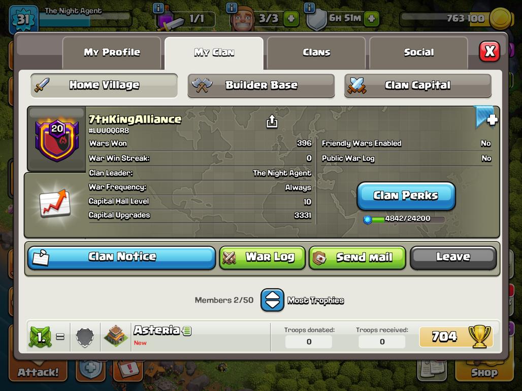 UNIQUE NAME CLAN LVL20 7thKingAlliance CRYSTAL 1 MAX OUT CAPITAL PEAK