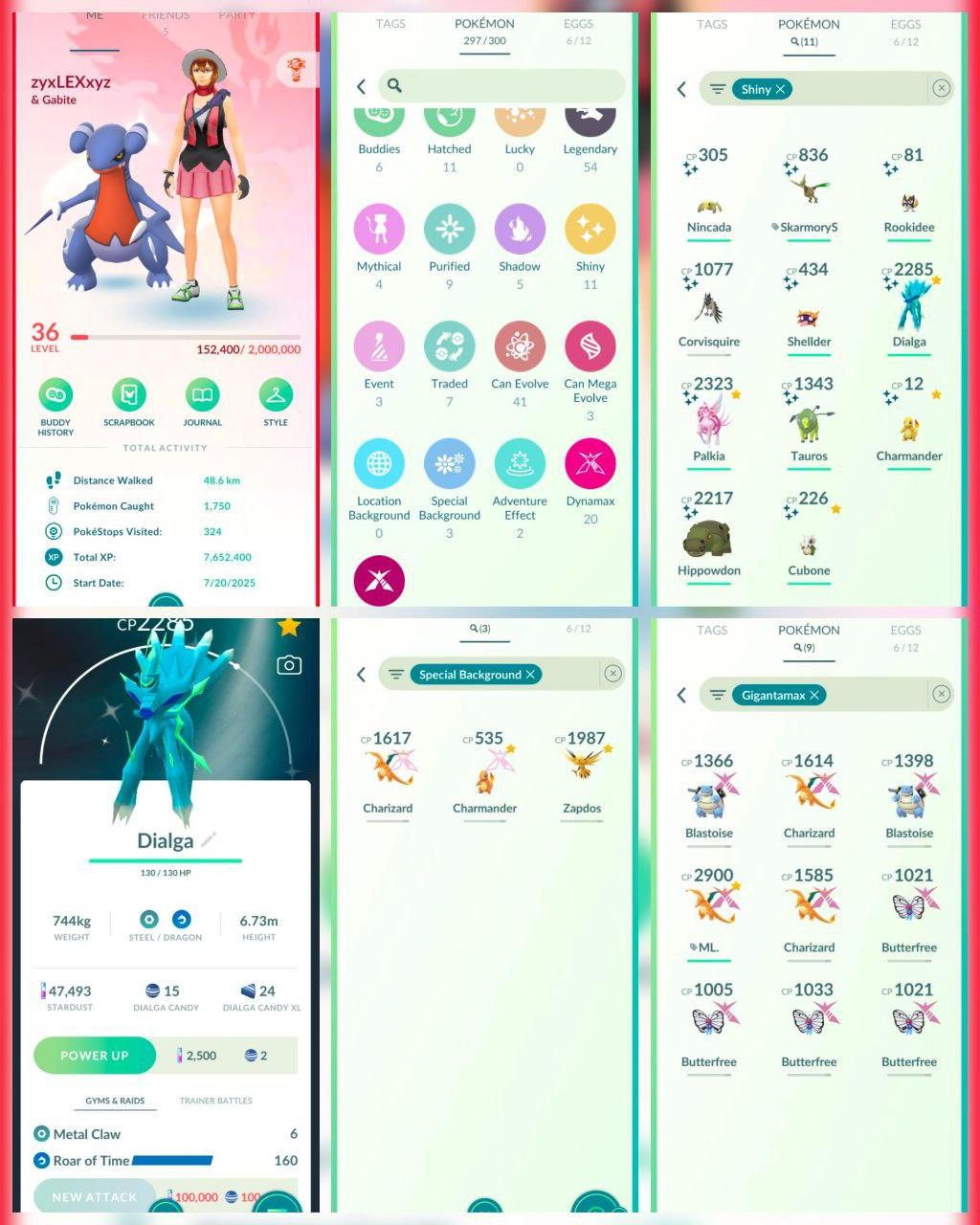 VC10 | Level36 | 54 Legendary | 11 Shiny | Rare Shiny ROT Dailga | 9 Gmax | Shiny Palkia | Shiny Charmender | Best Deal
