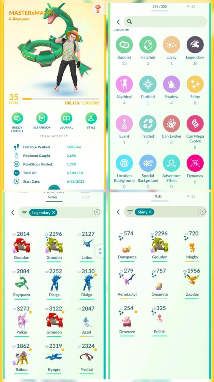 VE25 | Level35 | 26 Legendary | 8 Shiny | 2 Shiny Legend | Rayquaza | Rare Magby | Shiny Groudon | Dailga | Palkia | Kyo