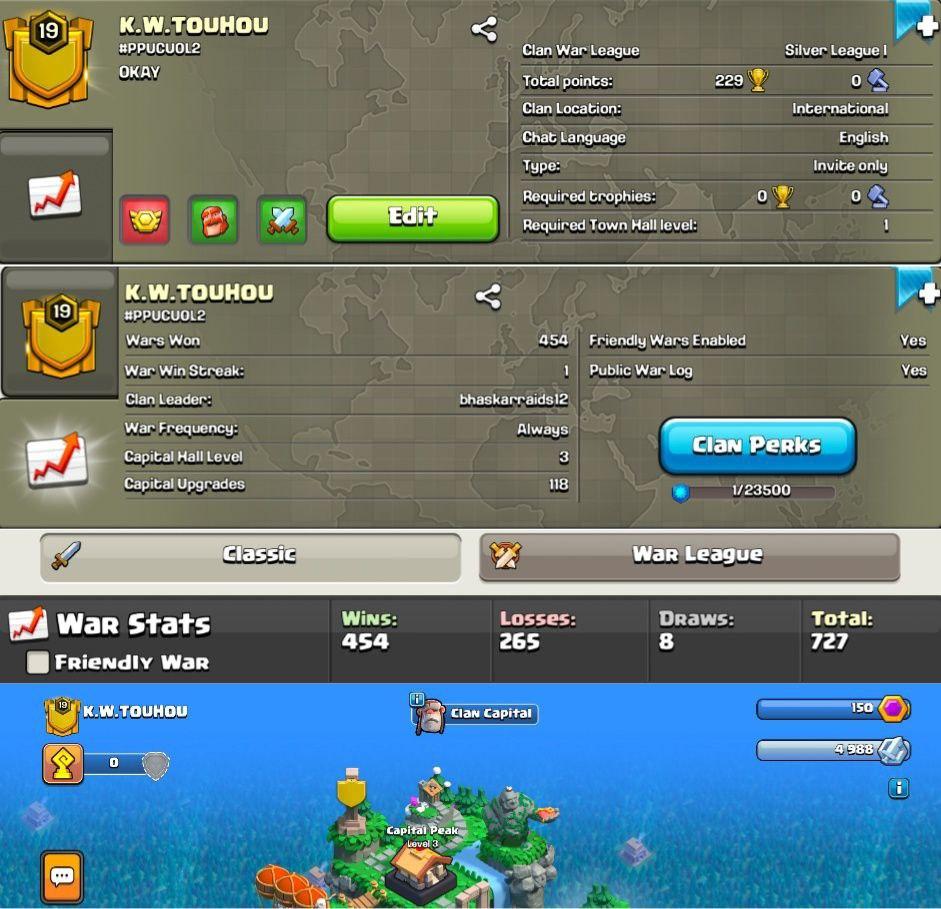 CAPITAL HALL 10 | Clan Level 17 | Name: anime lover's | Awesome Name | Wins 125 Losses 106 | Gold 1