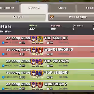 SQUAD BUSTERS |23 LVL | 63 LVL SQUAD | 16-3 STAR |5-2 STAR |21 SQUAD | 35 EMOJI | SEE SCREENSHOTS |