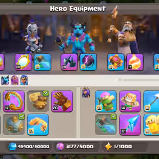TH 17|xp247|heros 100-100-73-75-50|12 purple equipment|delivery now