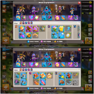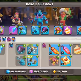 CHEAPEST !! TH14 GOOD - GOOD HEROS - 131 XP Lvl - EPIC EQ. - LEAGUE MEDALS - STACK Magic Items - Instant A713