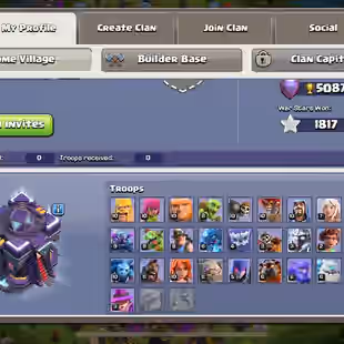 [ Premium ] TH17 Pre Max ! High 243 XP | 1840 War stars | 7 Epic Equipments | Max Hero 95-95-79-72-45 !! Max BB A608