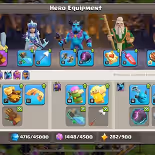 Cheapest !! TH16 x HeyDay !! Epic Giant Gauntlet -172 XP | Epic Equipments | Heros Skin | 736 War Stars !! Instant -A534