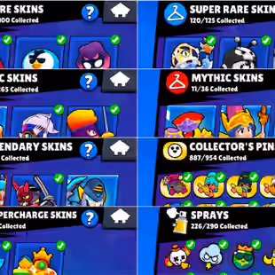 [ CHEAPEST ] 39000 TROPHY | 24 MAX POWER - 8 HYPER-CHARGE - RARE GOLD MECHA BO | 86/94 BRAWLERS | 122 SKINS | A712