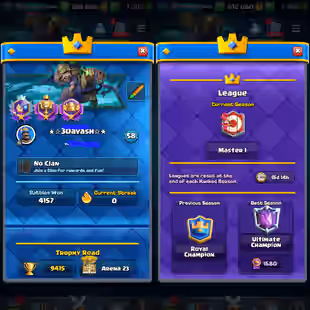 KT 15 | 9400 Trophies | Lv 58 | 20 Elite Cards n 46 Max Cards | Cool Banners | 98 Emotes | Good Badges | Instant Deliver
